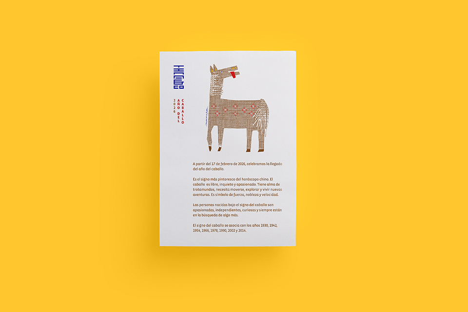 Con motivo del Año Nuevo Chino 2026, representado por el caballo en el horóscopo oriental, desarrollé esta ilustración en colaboración con Tina & Co. La ilustración se aplicó a su nueva línea de merchandising y se convierte en el segundo ícono de su colección personal.